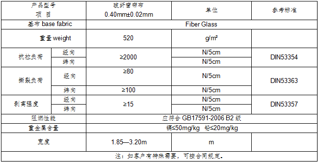 產(chǎn)品規(guī)格:1.85-3.20M;克重:520g (±20)gsm